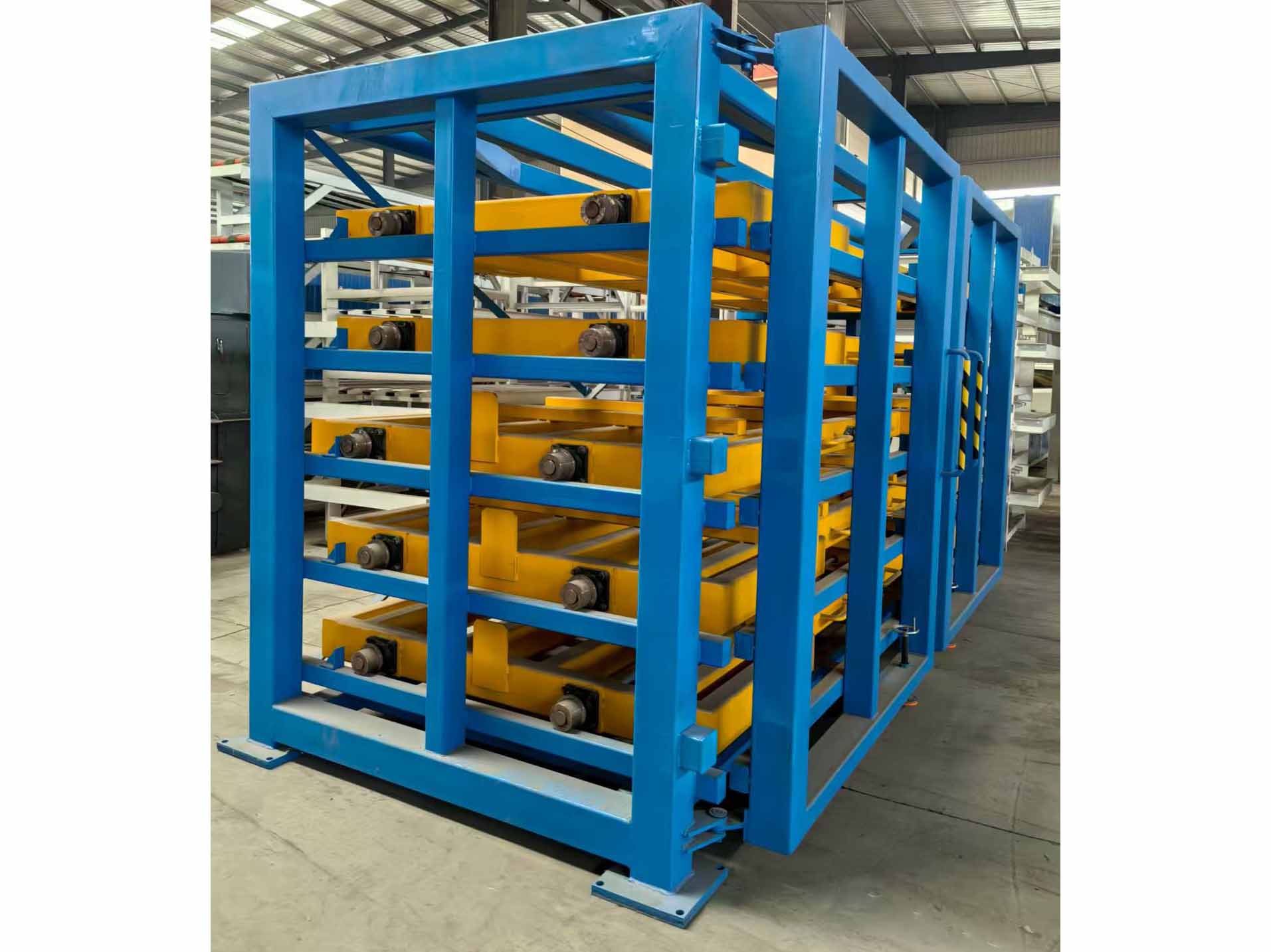 1.每层抽屉配备高承重滚轮(单层承1-20吨),可完全拉出,直接吊装或叉车存取。层高定做。适应不同厚度板材(如金属5-50mm
